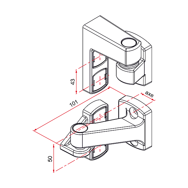 Scharnierset Pentoor voor poorten bij schuine hellingen. Een scharnier waarmee u uw poort kunt openen wanneer deze op een positieve helling staat. Dankzij het ontwerp volgt de poort de helling met hetzelfde percentage. Dit scharnierset is verkrijgbaar met verschillende centerafstanden voor een juiste en passende montage AXE 25 35 40 en 45mm. De AXE afstand is hart van het draaipunt tot hart van het bevestigingspunt zoals op de tekening weergegeven. Ideaal scharnier waarmee u de poort schuin omhoog open kunt draaien bij bijvoorbeeld een oplopende oprit. Voor het monteren op Aluminium kokerprofielen raden wij aan om hiervoor de montage insert te gebruiken. Dit geeft meer stevigheid op het aluminium profiel tegen indeuken.