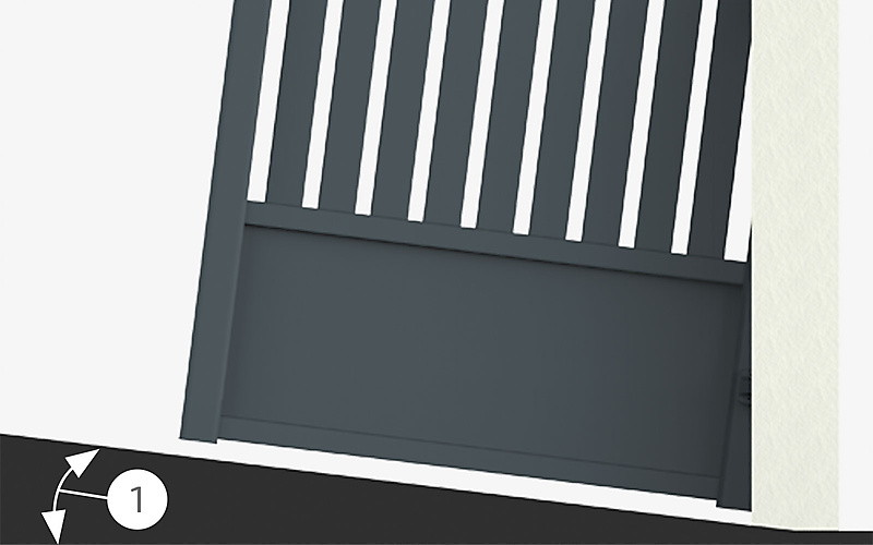 Tijdens het openen volgt de poort dan ook correct de helling.