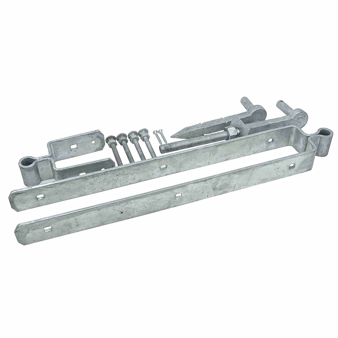 Verstelbare afhangset voor engelse poort FV 77mm met diameter van 19mm. Scharnierset voor weidepoorten word gebruikt bij het bevestiging van deuren en poorten.
