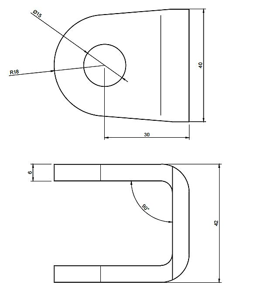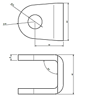 U-oor in cortenstaal voor poortscharnieren. U-lasoor voor oogbout scharnieren, corten ziet hetzelfde eruit als staal bij niet roest. Plaat gezet in cortenstaal blank onbehandeld. Afmeting van het cortenstalen u-oor 40x48x42 mm - t=6mm