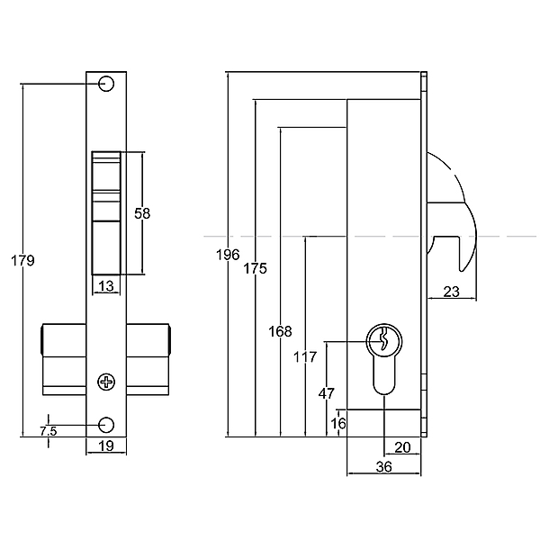 - Geleverd met een eurocilinder van 60 mm en 3 sleutels