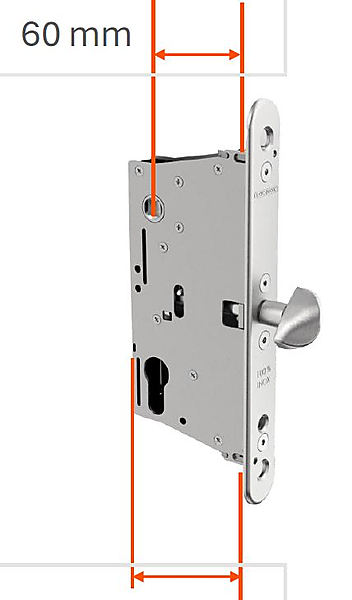 Locinox Eightylock-LS insteek schuifpoortslot doormaat 60mm met grote twist finger. Schuifpoortslot van Locinox voor zware industriële poorten en is te combineren met de Schuifpoortslotvanger SSKZ - P00006976. De cilinder is niet inbegrepen, omdat de benodigde maat afhankelijk is van de profielbreedte.