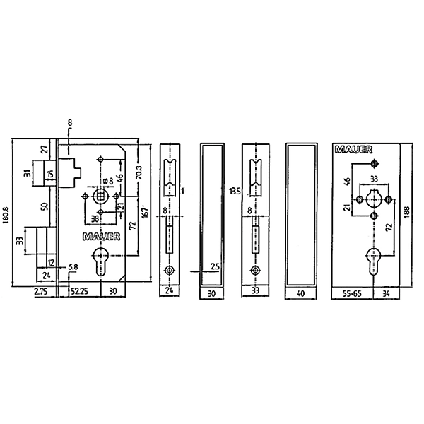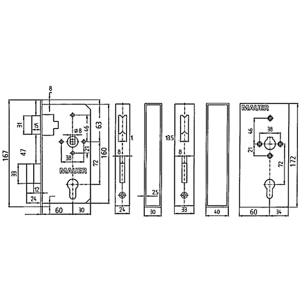 Mauer Poortslot 6040 voor stalen hekwerken. Het hekslot wordt compleet met stalen kast geleverd.