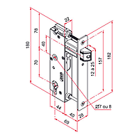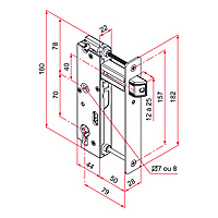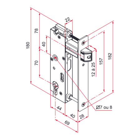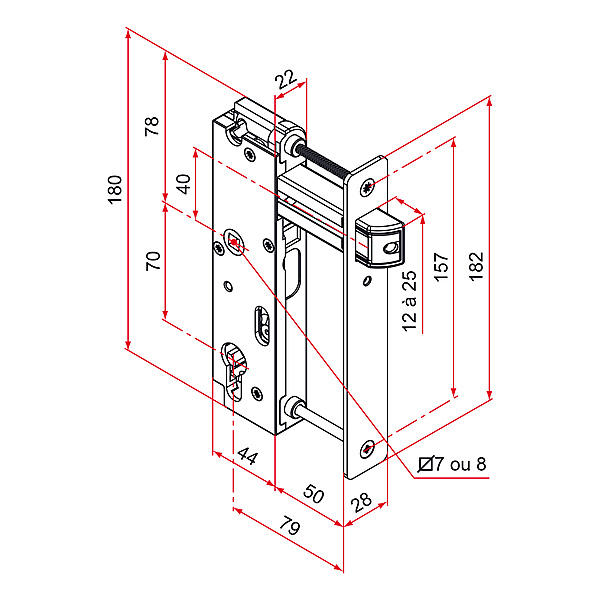 Tirard opbouw poortslot geschikt voor montage tegen de koker van 40 of 50mm. Het slot word door en door tegen de koker gemonteerd en kan middels de apart te bestellen slotkast afgewerkt worden. Het Tirard poortslot heeft een doornmaat van 69 of 79mm afhankelijk van de kokermaat. Met een PC maat van 70mm en een krukgat van 8mm. Het slot word geleverd exclusief cilinder.