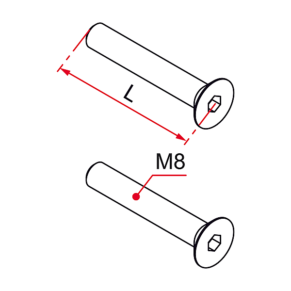 Schroeven set m8x35 voor bevestiging insert montage stuk waarmee u het scharnierenset voor schuine hellingen op een aluminum koker kunt bevestigen