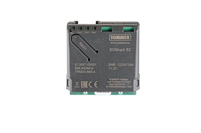 Sommer SOMUP4 S2 inplugontvanger/repeater 4 kanalen. Bi-directionele inplugbare ontvanger 868 MHz met geïntegreerde antenne en aansluiting voor externe antenne. Standaard 40 geheugenplaatsen en via de Memo uitbreidingsmodule uit te breiden tot 450 extra geheugenplaatsen.