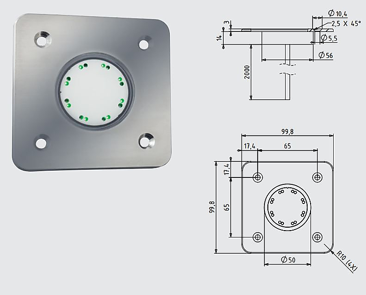 Dorma Voet LED-sensorschakelaar voor inbouw in de vloer. Als manuele impulsgever stuurt de LED-sensorschakelaar de opening van een automatische deur. De impulsgave gebeurt via aanraking en is voor gebruik als voetschakelaar. Uitvoering in robuust roestvast staal en gehard glas, volledig ingegoten. Door 8 groene LED's van ver herkenbaar en de rode LED's geven optische terugmelding bij aanraking. Hygiënische uitvoering . Gepast voor in de hoogte verstelbare montagevoet
