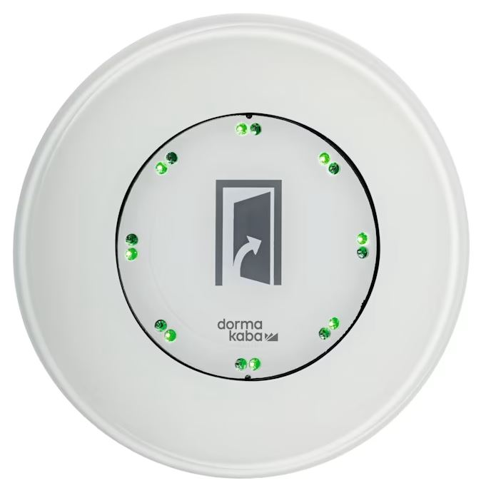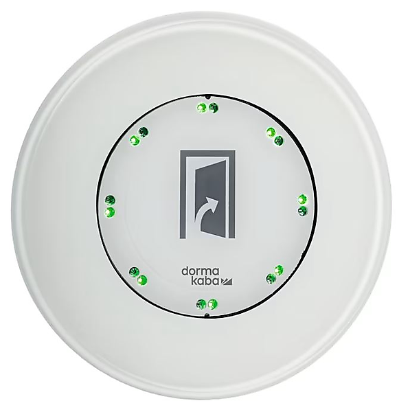 Dorma LED-sensorschakelaar uit glas. Als manuele impulsgever stuurt de LED-sensorschakelaar de opening van een automatische deur. De impulsgave gebeurt via aanraking. Dormakaba ledsensor uitvoering in gehard glas, volledig ingegoten. Door 8 groene LED's van ver herkenbaar en rode LED's geven optische terugmelding bij aanraking
