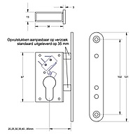 - 11.: Afmetingen L x H x D voorplaat: 121 x 24 x 3mm