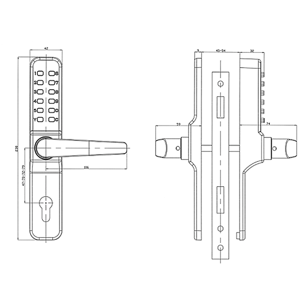 - Voor deurdiktes 35 tot 55mm