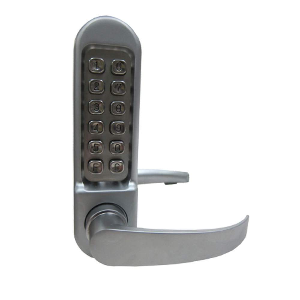 Door het intoetsen van de juiste code kan de deurkruk aan de buitenzijde worden bediend. De deurkruk aan de binnenzijde werkt altijd.