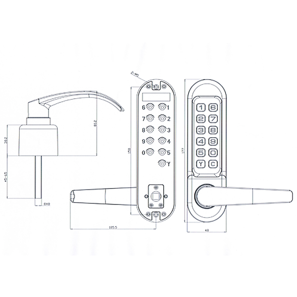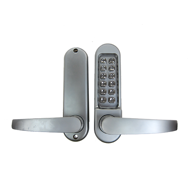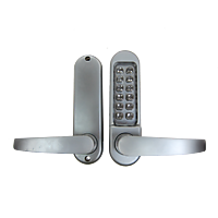 MAUER 5003 deurkruk met code. Functioneel mechanisch codeslot, waarbij een codeslot wordt gecombineerd met het deurbeslag. Het slot is geschikt voor montage op een bestaand mechanisch insteekslot met een PC maat van 55, 72 of 92 mm. Groot voordeel is dat de cilinderfunctie van het slot intact blijft. Kan gecombineerd worden met een SKG®-cilinder en rozet.