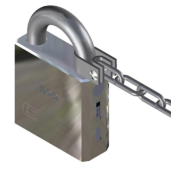iLOQ H5S S5 hangslot beugel klasse 5 met of zonder ketting en met of zonder RTC. Hangslot voor buitengebruik beveiligt en houdt toezicht op vergrendelde opslag zoals medicijnkasten, lockers, hekken en postbussen. Het hangslot is onderdeel van het D2D-netwerk zodat de lijst van geblokkeerde sleutels online bijgewerkt kunnen worden.
