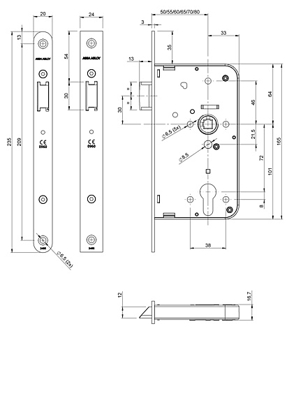 Assa Abloy 2465 IDS Loopslot met stille sluiting door speciaal ontworpen instelbare dagschoot. Loopslot 2465 van Assa Abloy met instelbare voorstand van de dagschoot geschikt voor toepassing in combinatie met een elektrische deuropener in loopdeuren.