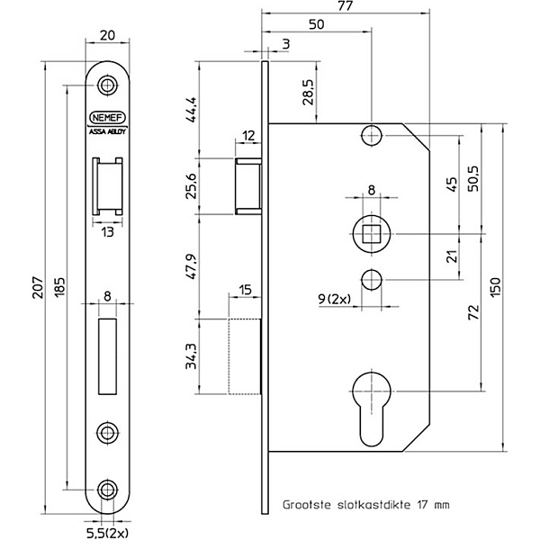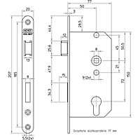 NEMEF 500 serie: 549/4, draairichting 1+3 = DIN Ls of draairichting 2+4 = DIN Rs (renovatieslot) Dag en nacht insteekslot voor euro-profielcilinder.