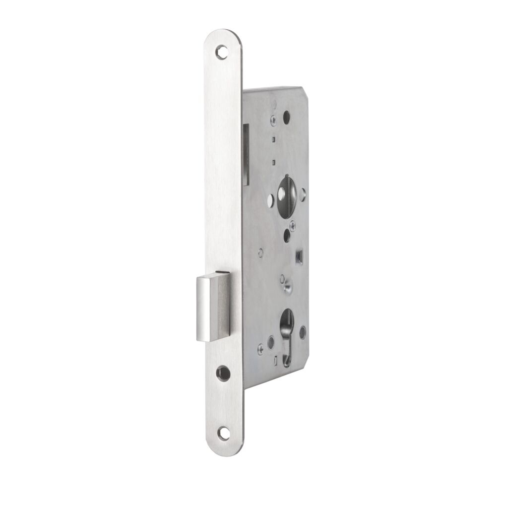 Maasland kastslot. Deze insteek projectsloten zijn uitermate geschikt voor hoog frequent gebruik in de utiliteitsbouw. Alle modellen zijn geproduceerd volgens DIN 18251 klasse 3 en voldoen ruimschoots aan de eisen volgens DIN EN 12209 met betrekking tot het bedieningsgemak, mechanische werking en levensduur. De vernikkelde nachtschoten en een gesloten verzinkte slotkast verzekeren een lange en storingsvrije levensduur. Deze insteeksloten zijn leverbaar voor stompe deuren en, of opdekdeuren met een roestvast stalen voorplaat van 20 of 24 mm breed. Op cruciale punten zijn de sloten voorzien van geluiddempende kunststof buffers.