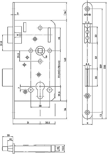 - slottypes: PZW, BB, WC, voorbereid voor Zwitserse rondcilinder of puur als loopslot