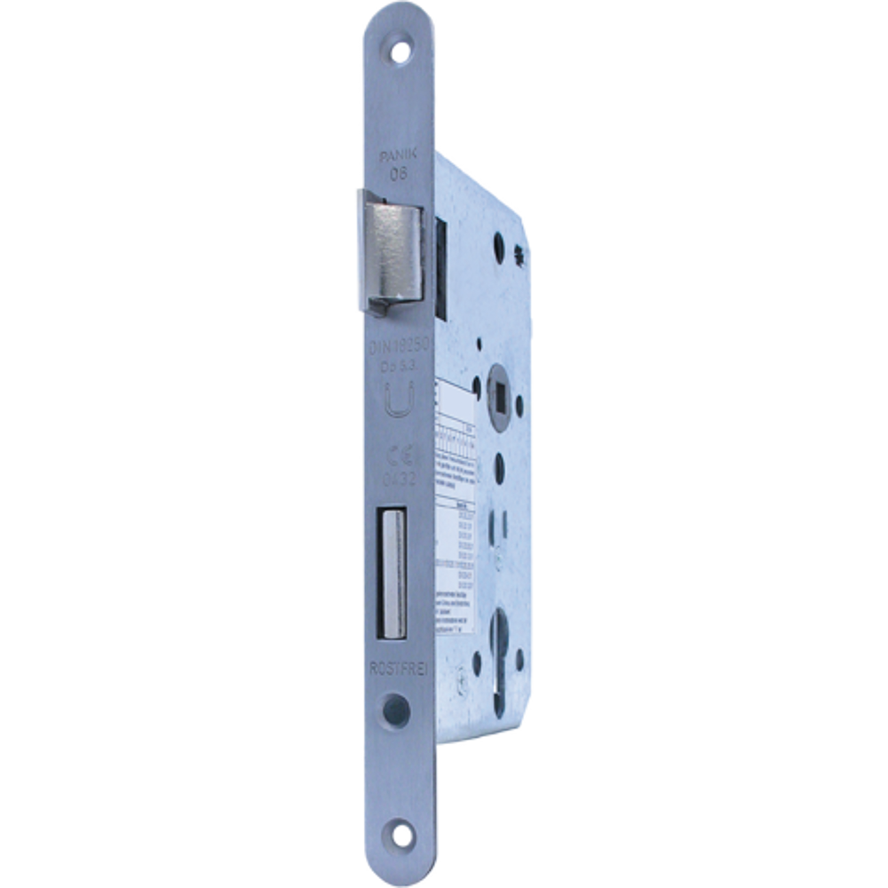 MAUER paniekslot PC72 met een doornmaat van 60 mm, uitgevoerd met een voorplaat van 235 x 20 mm en geschikt voor DIN LS op buiten draaiende deuren.