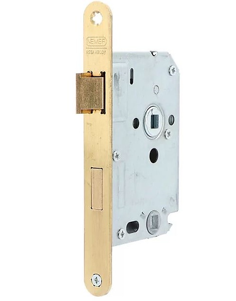 Nemef badkamer / WC-slot 1264. Het Nemef badkamer/WC-slot 1264 is speciaal bedoeld om de deur van een badkamer of toilet af te sluiten. Door de universele maatvoering met doornmaat 50mm, kan het bestaande slot eenvoudig vervangen worden zonder dat er schade aan de deur ontstaat. Links en Rechts toepasbaar geleverd inclusief sluitplaat.