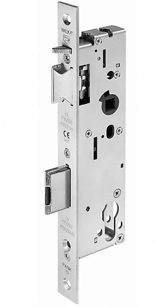 Wilka 7667 Zelfvergrendelend anti-paniek insteekslot voor 1-vleugelige profieldeuren. Zelf vergrendelend antipaniek insteekslot 7667 van Wilka is verkrijgbaar in diverse doornmaten. Paniekslot voor 1-vleugelige profieldeuren geschikt voor profielcilinders met wisselfunctie E. Toegelaten voor vluchtdeuren conform EN 179 & EN 1125. Op brandwerendheid gekeurd conform EN 1634-1 & DIN 4102-18. Gecertificeerd conform EN 12 209.
