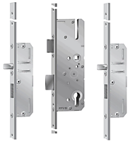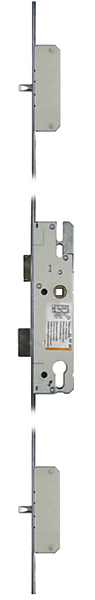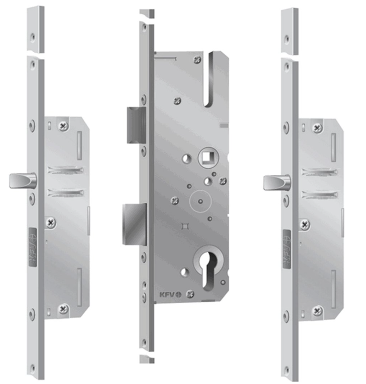 KFV AS2300 cilinderbediende meerpuntssluiting 2 pinnen VP24U B001. KFV meerpuntsluitingen verkrijgbaar in diverse doornmaten en voorplaten en zijn vervaardigd uit hoogwaardige materialen. Deze sloten onderscheiden zich door hun verscheidenheid voor zowel houten deuren als PVC- en aluminiumprofielen. Serie AS2300 is een allround-product voor de inbouw in al deze materialen. De afschuining van de geharde ronde stalen pinnen zorgen voor een hoge dichting in combinatie met de sluitplaten. De stalen pinschoten verhinderen het uitheffen van de deur.