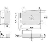 Cisa oplegslot met vaste buitencilinder doornmaat 50 zilver voor buitendeuren 38 tot 42 mm dik. Opbouw slot voor voordeuren. type CISA 50421 of 50321