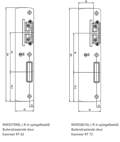 FUHR Dag- en nacht RVS sluitplaat specifiek voor de aluminium deurprofiel serie RT62 en RT72. De FUHR sluitplaten t.b.v. van de 881 en 83x meerpunts (motor)sloten zijn SKG **/***getest. Voor de aluminium en staalkozijnen zijn deze gebaseerd op RVS304 materiaal.