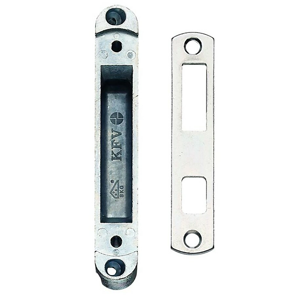 KFV sluitkom + plaat tbv meerpuntsslot 401076. KFV 3401076/2600-267W. Afgeronde sluitkom met plaat voor extra schoten (10 mm).Te gebruiken bij meerpuntsluiting KFV as 2600/2602.