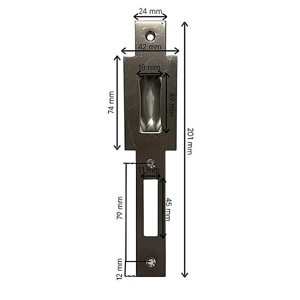 Verzinkte sluitplaat voor smaldeurslot pendeldeur SL25PD en SL03PD.