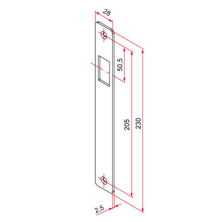 Sluitplaat voor Tirard opbouw poortslot 230x28mm