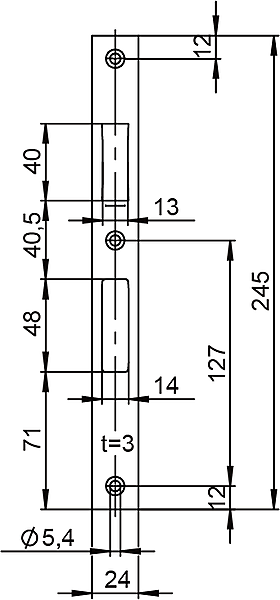 Wilka P641 RVS sluitplaat voor vluchtdeuren 24x3x245mm
