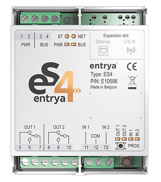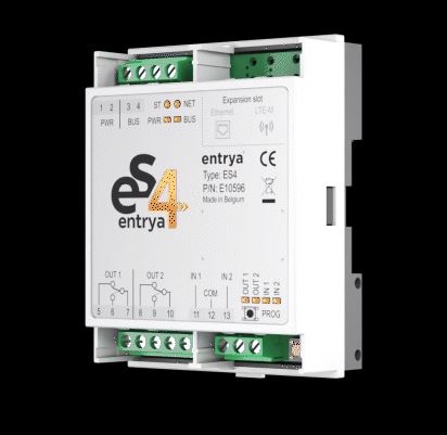 Entrya ES4 controller met wifi. De ES4-controller vormt het hart van EntraSYSTEM4. Gebruik de controller in Basic-modus met het ES4-codeklavier voor snelle installatie en directe programmatie tot 100 PIN-codes via het codeklavier, of eenvoudig beheer met de ES4-app (1).