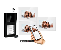 Entrya Facila neXt K2171W/B3 kit zwarte video intercom. Kit tweedraads wifi video intercomsysteem voor appartementen met bijhorende app en 1 voeding met businterface V71.