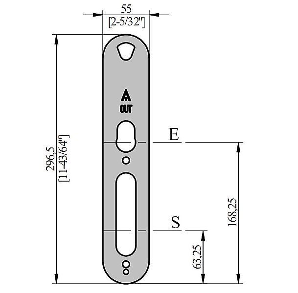 Salto XS4 Original smetplaten 55mm geborsteld RVS. SALTO XS4 Afdekplaat set voor binnen- en buitenzijde - 296,5 x 55 mm, voor Ex02x, Ex4xx, Sx02x, Sx4xx handgrepenreeks