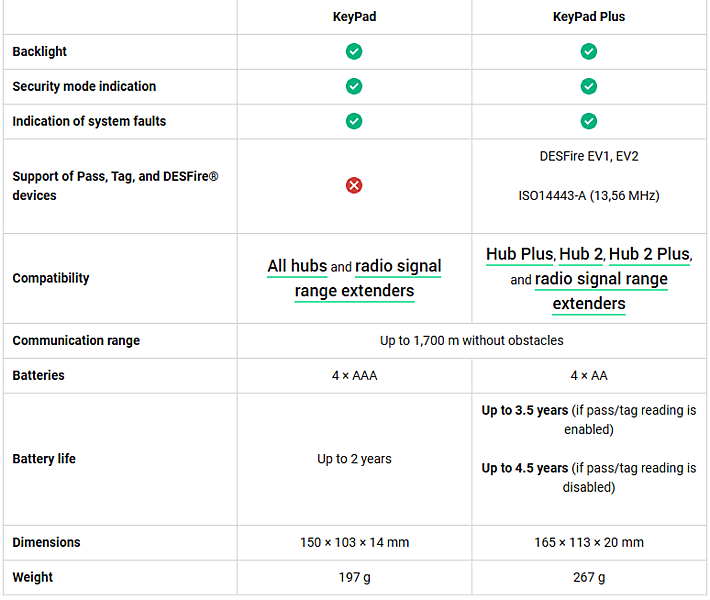 KeyPad Plus wordt ondersteund door de Hub Plus, Hub 2 en Hub 2 Plus