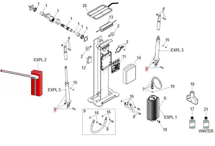 FAAC B680H Complete cylinder Ø25 63000109 - Vervangend onderdeel 5 op de tekening voor B680H slagboom van FAAC