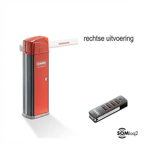 Sommer ASB alu slagboomaandrijving links of rechtse uitvoering. Slagboom van Sommer in rood gelakte aluminium behuizing voor een links of rechts sluitende boom. De slagboom aandrijving van Sommer word geleverd exclusief mast. Draadloze bediening door geïntegreerde radio-ontvanger met bi-directioneel radiosysteem SOMloq2. Automatische obstakeldetectie: automatisch openen bij contact met obstakel zonder inklemmen van voertuig.
